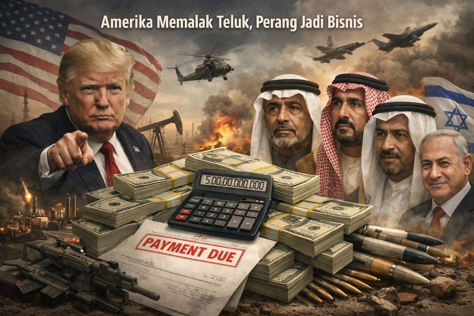Jika klaim “tagihan triliunan dolar” itu benar, maka dunia sedang menyaksikan bentuk baru pemerasan modern: pemerasan atas nama keamanan. Negara Teluk, yang selama ini diposisikan sebagai sekutu strategis Amerika, seolah dipaksa memilih dua opsi yang sama-sama pahit: bayar mahal untuk perang, atau bayar mahal untuk damai. Ini bukan diplomasi. Ini mekanisme pemaksaan yang hanya bisa dilakukan oleh negara dengan dominasi militer dan ekonomi global. (VIVA.co.id, 23 Maret 2026)