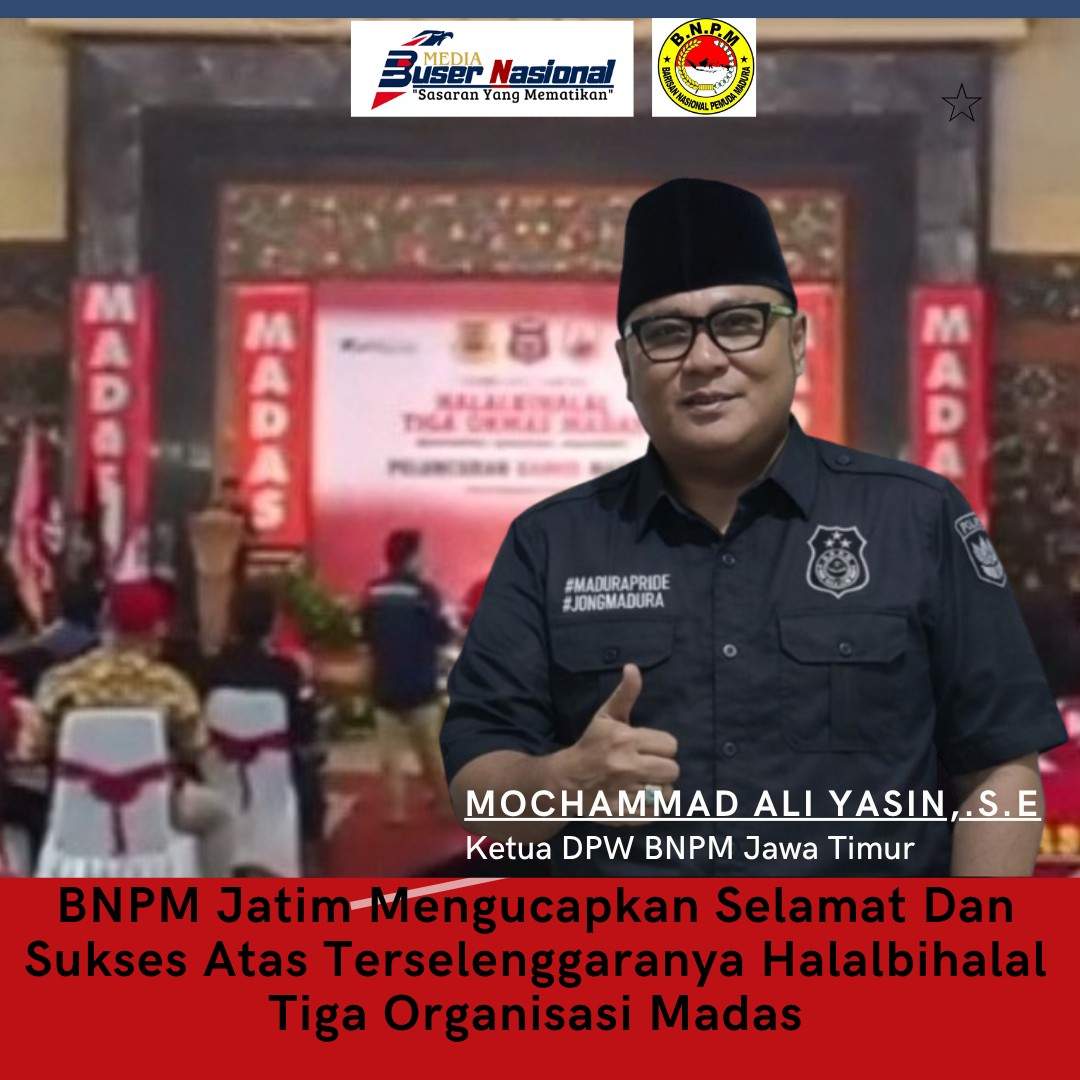 Ketua DPW BNPM Jawa Timur, Mochammad Ali Yasin, menyampaikan ucapan selamat atas suksesnya kegiatan yang dinilai menjadi momentum penting dalam mempererat silaturahmi serta memperkuat persatuan antar organisasi masyarakat Madura.