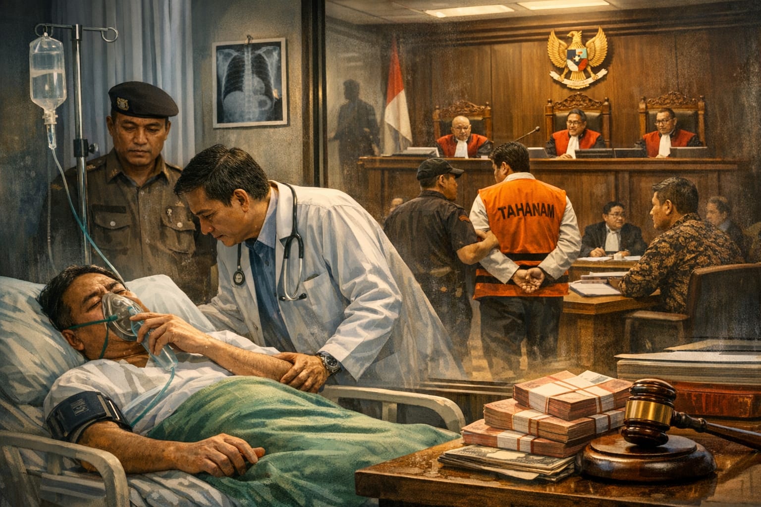 BuserNasional — jakarta — Fenomena tersangka korupsi yang mengajukan alasan sakit saat menghadapi proses hukum terus berulang dalam sejarah Indonesia. Dari kasus Soeharto hingga Setya Novanto, publik melihat pola yang memunculkan pertanyaan serius tentang integritas penegakan hukum, transparansi medis, serta potensi penyalahgunaan kondisi kesehatan sebagai celah untuk menunda atau menghindari proses hukum yang berjalan.