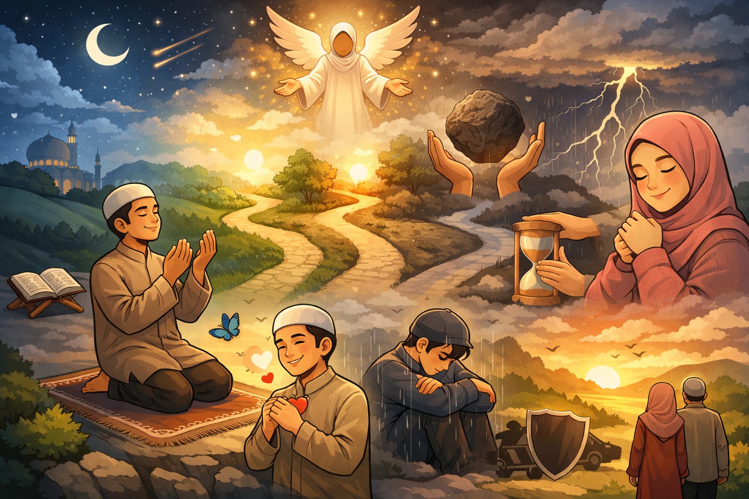 Di sinilah letak keindahan iman: ketika seseorang tetap berdoa meski belum melihat hasil, tetap percaya meski belum memahami, dan tetap ikhlas meski kenyataan tidak sesuai harapan. Hati yang demikian tidak mudah runtuh, karena ia bersandar pada Zat yang tidak pernah salah dalam menetapkan takdir.