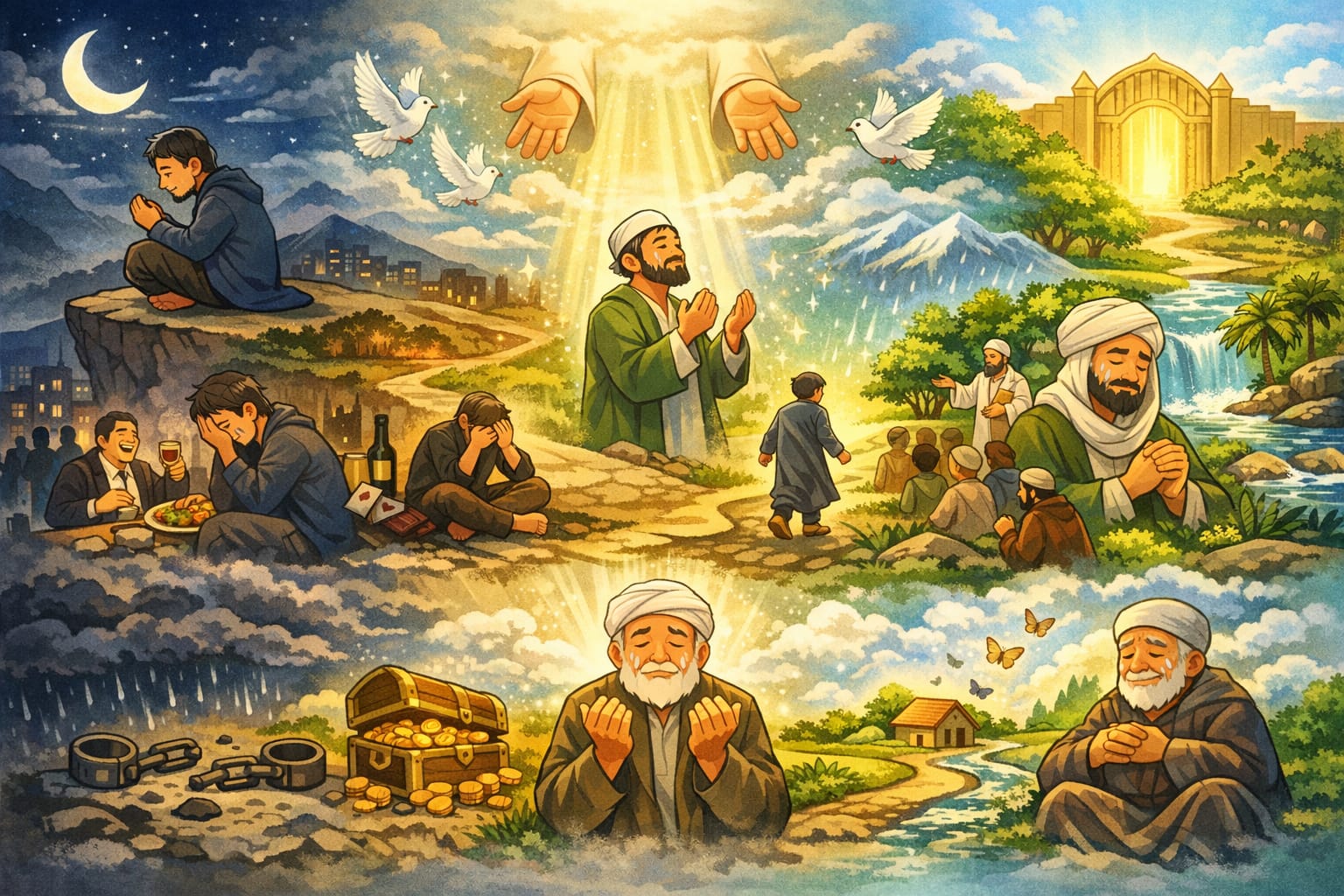 Seorang ulama salaf pernah ditanya, “Apa yang Allah lakukan kepada hamba ketika Dia mencintainya?” Jawabannya begitu singkat namun dalam: Allah akan mengilhamkan istighfar kepada hamba itu ketika ia salah. Maknanya, cinta Allah bukan hanya berupa rezeki yang melimpah atau tubuh yang sehat, tetapi berupa hati yang tidak betah dalam dosa. Banyak orang diberi kenikmatan dunia, namun hatinya gelap dan jauh. Sedangkan ada orang yang hidup sederhana, namun hatinya selalu kembali kepada Allah.