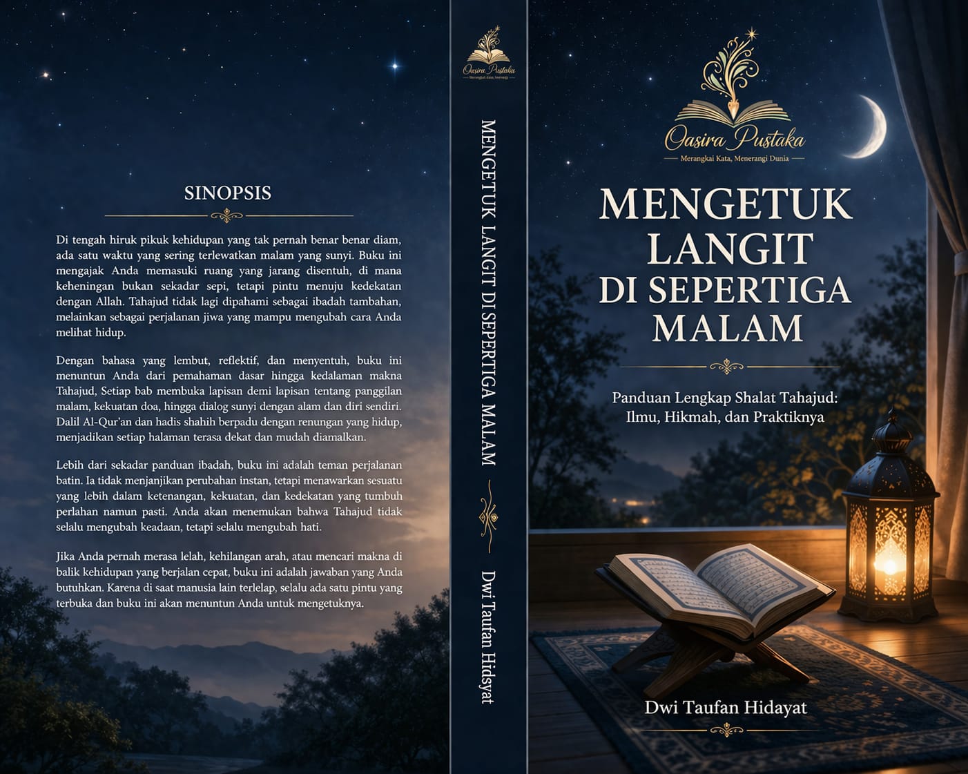 Buku Mengetuk Langit di Sepertiga Malam karya Dwi Taufan Hidayat hadir sebagai panduan spiritual yang menyejukkan, sekaligus membumi. Buku ini tidak hanya menjelaskan Tahajud sebagai ibadah sunnah, tetapi menempatkannya sebagai “jalan pulang” bagi jiwa yang lelah dan kehilangan arah. Sejak bagian prakata, pembaca sudah diajak merasakan bahwa Tahajud bukan sekadar rutinitas, melainkan sebuah ruang sunyi untuk kembali kepada Allah dengan jujur.