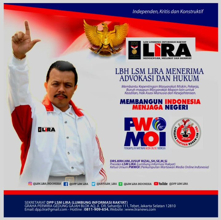Jakarta, BuserNasional.my.id, Presiden LSM LIRA sekaligus Ketua Dewan Pendiri, Drs. H.M. Jusuf Rizal, SE, M.Si, menegaskan posisi organisasi yang dipimpinnya sebagai satu-satunya LSM LIRA yang sah dan tercatat sejarah.