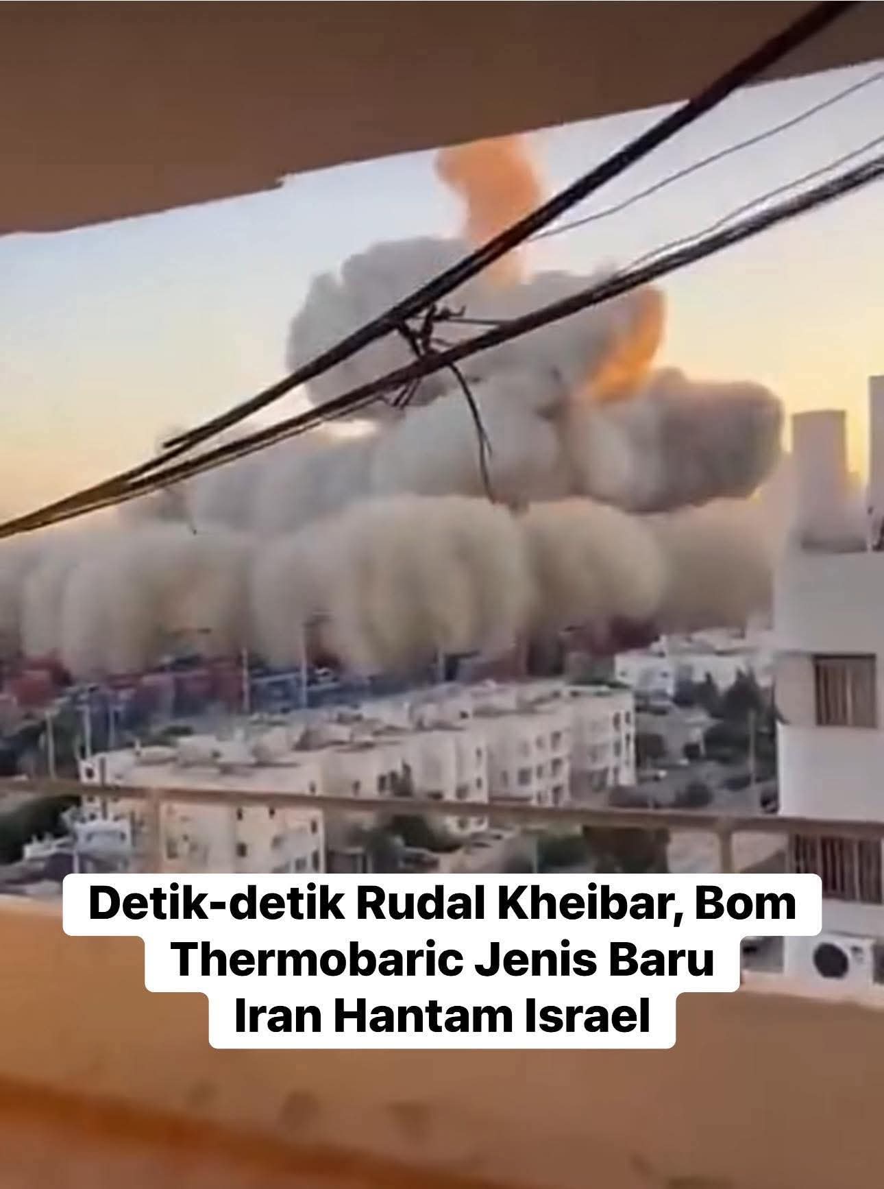rudal balistik jenis Kheibar yang membawa bom thermobaric jenis baru dilaporkan menghantam Pelabuhan Haifa