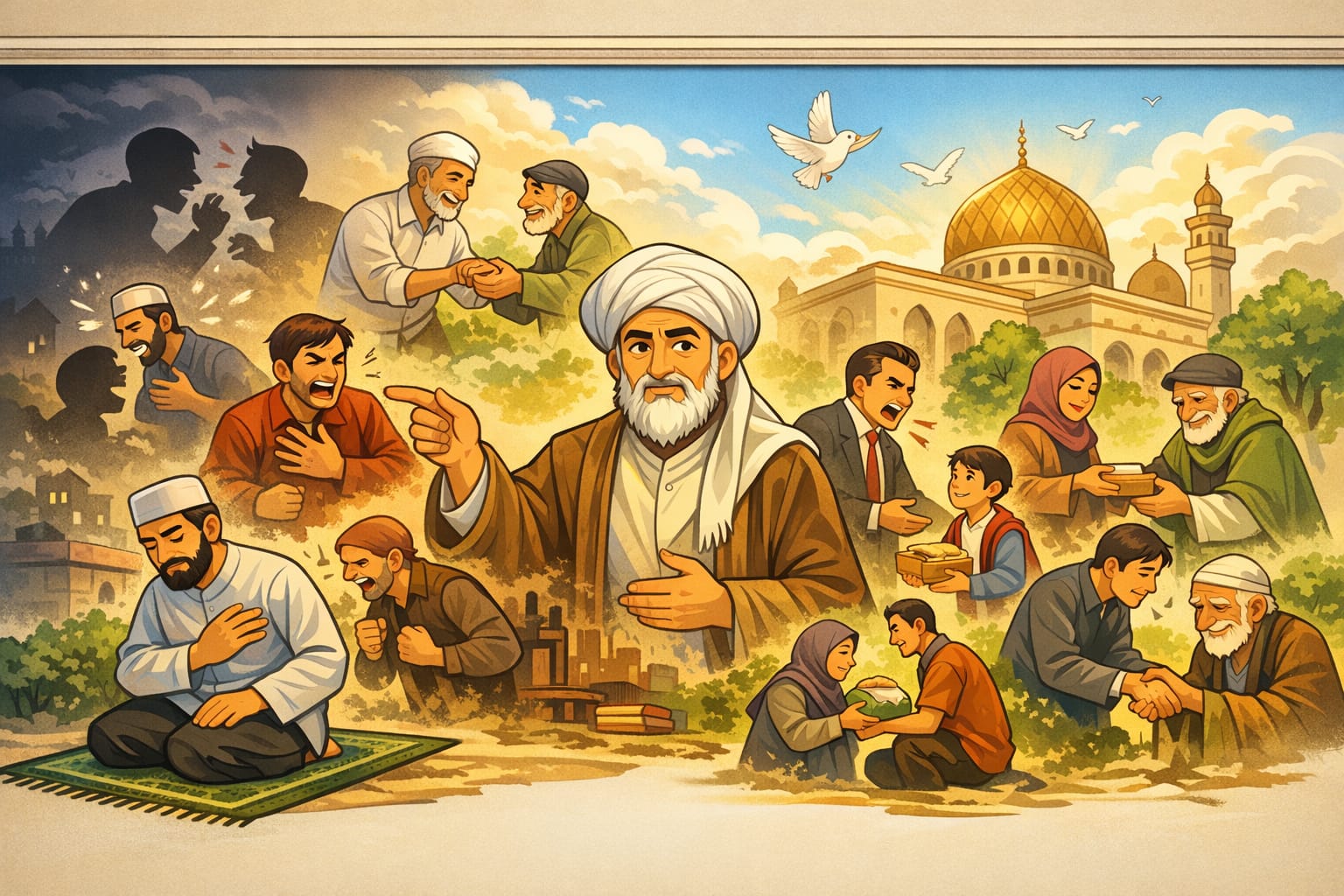 Di sinilah relevansi kalimat Imam Al-Ghazali menjadi sangat nyata. Banyak orang yang tampak saleh di masjid, tetapi menjadi kasar di rumah. Banyak yang menangis di sepertiga malam, tetapi menindas karyawan di siang hari. Banyak yang rajin berpuasa sunnah, tetapi lidahnya tajam melukai kehormatan orang lain. Maka benar, cermin jiwa bukan hanya sajadah, tetapi interaksi sosial. Jika kita ingin mengetahui kualitas iman kita, lihatlah bagaimana kita memperlakukan pasangan, anak, tetangga, orang miskin, orang yang berbeda pendapat, dan orang yang tidak punya kuasa membalas.