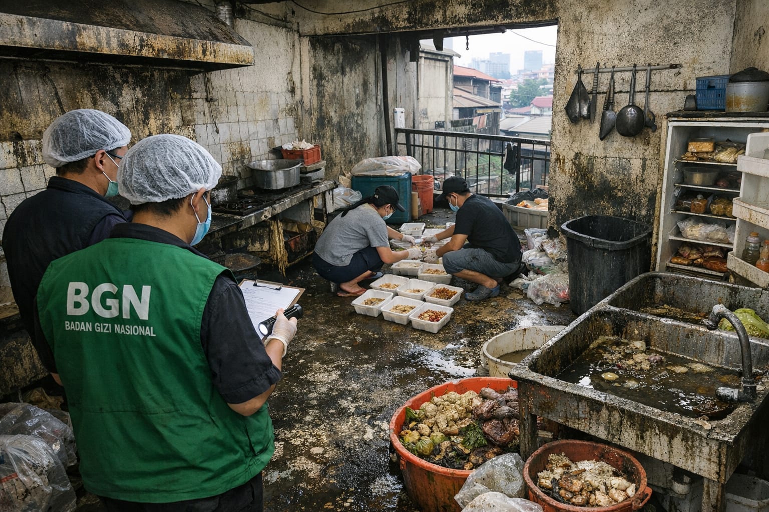 BuserNasional — Inspeksi mendadak Badan Gizi Nasional (BGN) di Satuan Pelayanan Pemenuhan Gizi (SPPG) program Makan Bergizi Gratis (MBG) di Gajahmungkur Kota Semarang menemukan kondisi dapur tak layak operasional dengan lantai berjamur, bahan makanan membusuk, dan fasilitas sanitasi yang buruk sehingga operasionalnya dihentikan sementara pada Maret 2026 karena diduga mengancam keamanan pangan masyarakat.