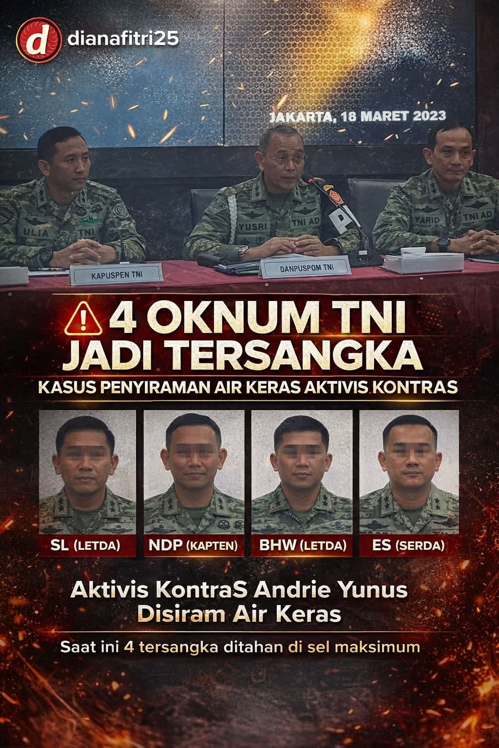 BuserNasional, Gelombang desakan publik terus menguat menyusul penetapan empat oknum Tentara Nasional Indonesia (TNI) sebagai tersangka dalam kasus penyiraman air keras terhadap aktivis, Andrie Yunus.