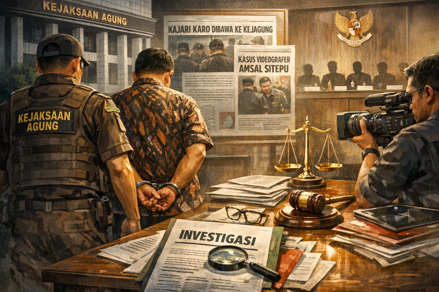 Laporan serupa juga disampaikan oleh Kumparan melalui artikel “Kajari Karo Diamankan Kejagung Buntut Perkara Videografer Amsal Sitepu” yang dipublikasikan pada 5 April 2026. Dalam pemberitaan tersebut disebutkan bahwa langkah pengamanan dilakukan untuk mendalami dugaan adanya kejanggalan dalam proses penanganan perkara, termasuk aspek administrasi dan tuntutan hukum yang sebelumnya diajukan.