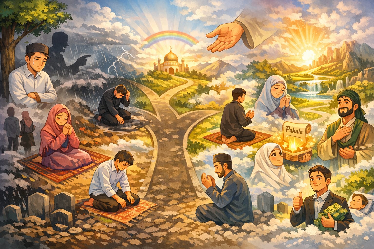 Kadang ujian datang dalam bentuk kehilangan. Kadang berupa sakit. Kadang berupa dihina, dipermalukan, disakiti. Bahkan sering kali ujian terbesar justru datang melalui manusia yang dekat. Mereka yang kita kira akan menjaga, ternyata malah menjatuhkan. Mereka yang kita kira akan setia, ternyata pergi. Dan di saat itulah hati manusia diuji: apakah ia akan marah pada takdir, atau tetap ridha kepada Allah.